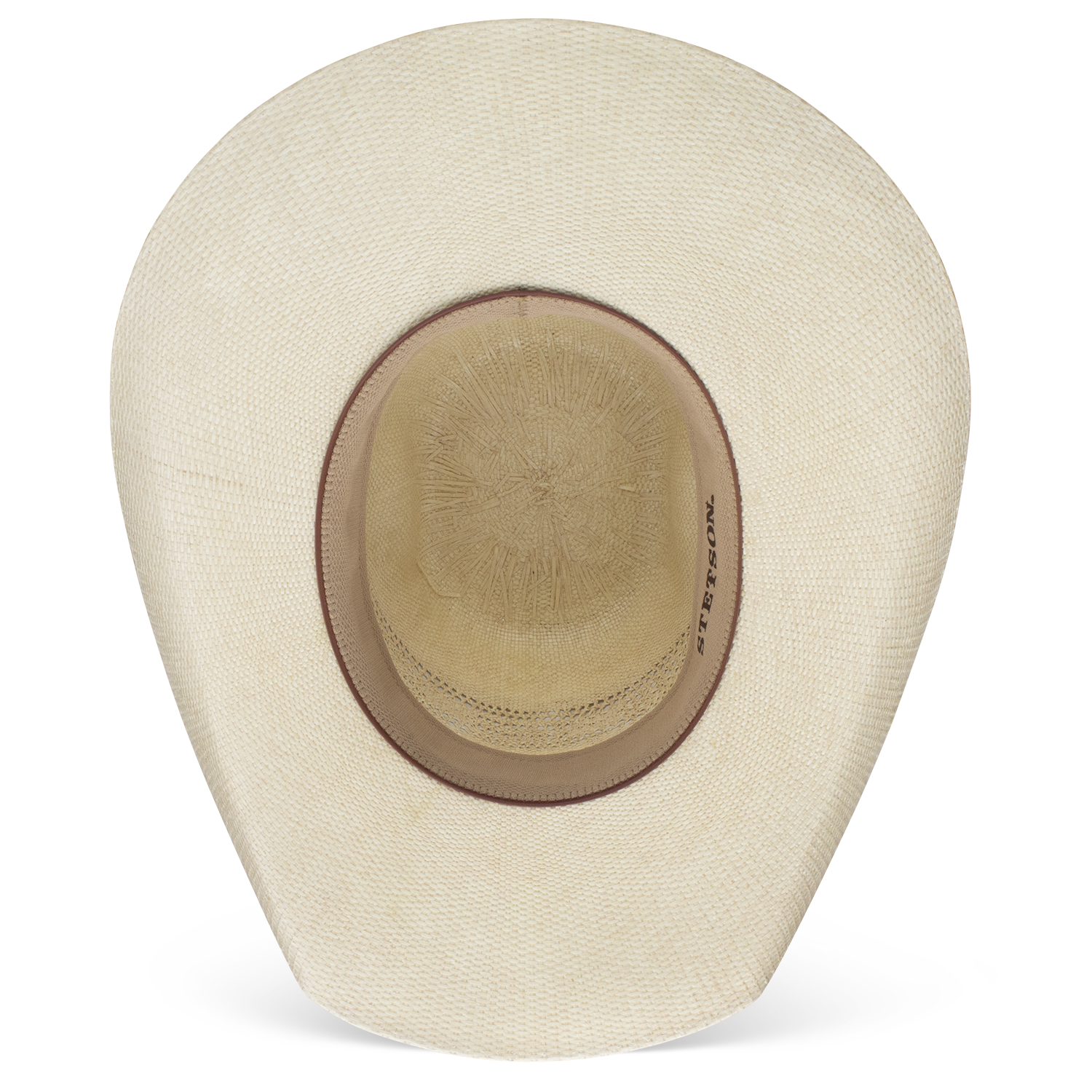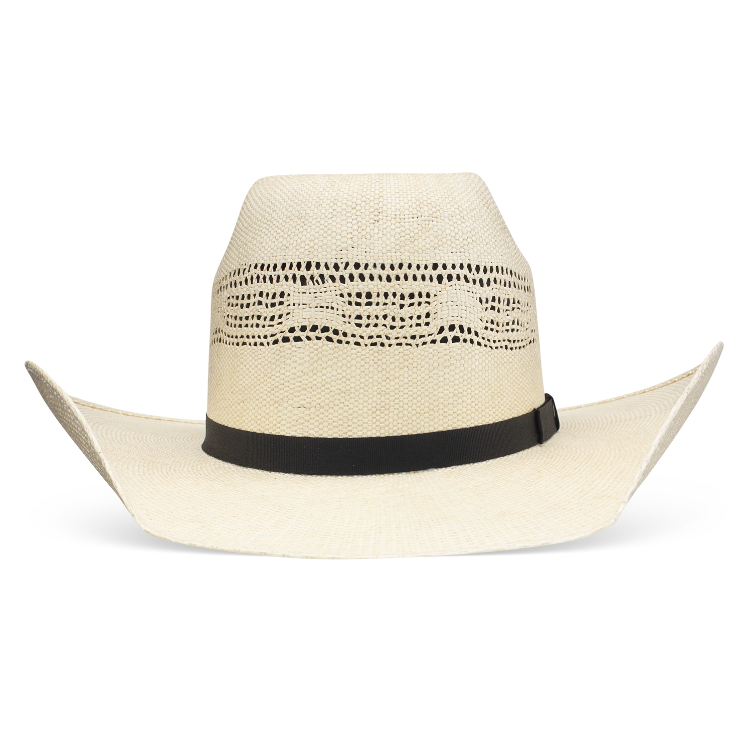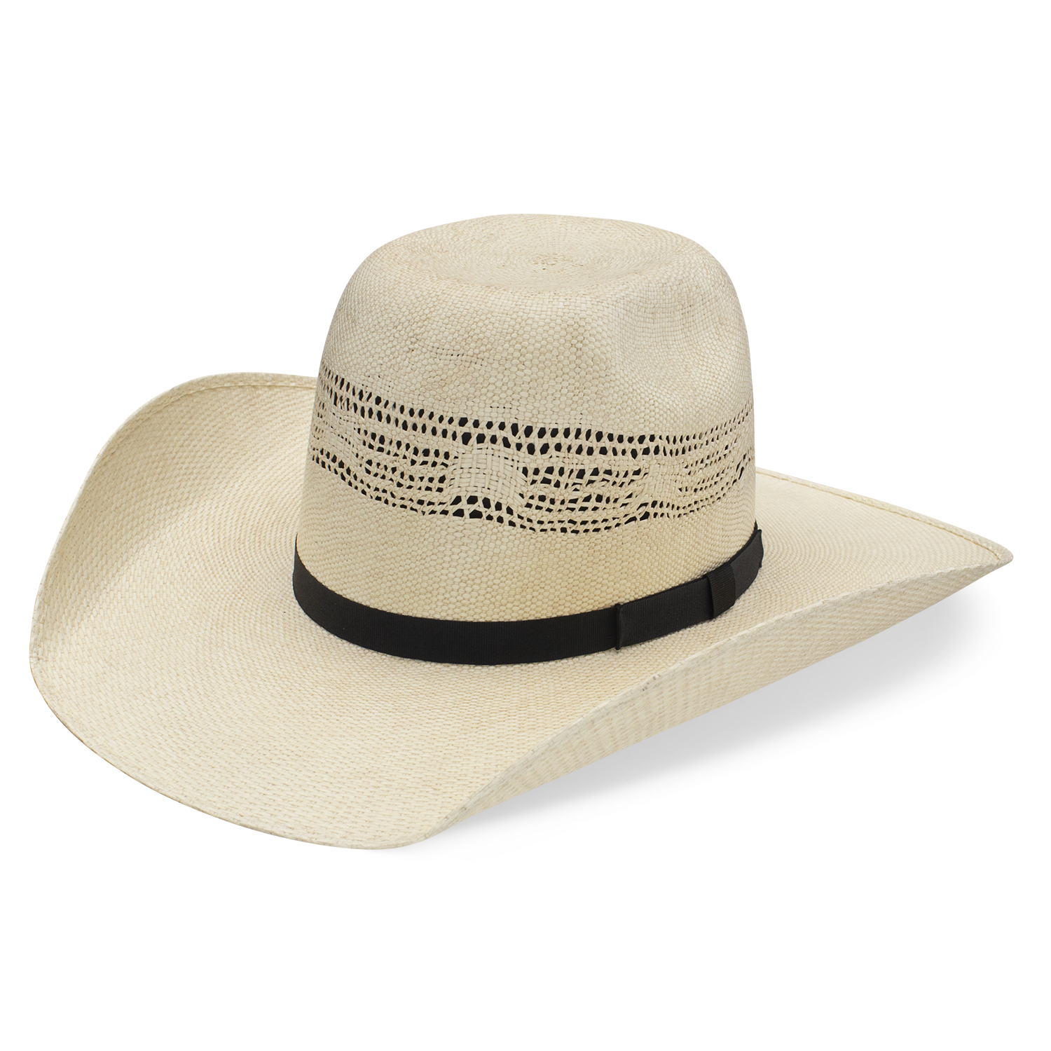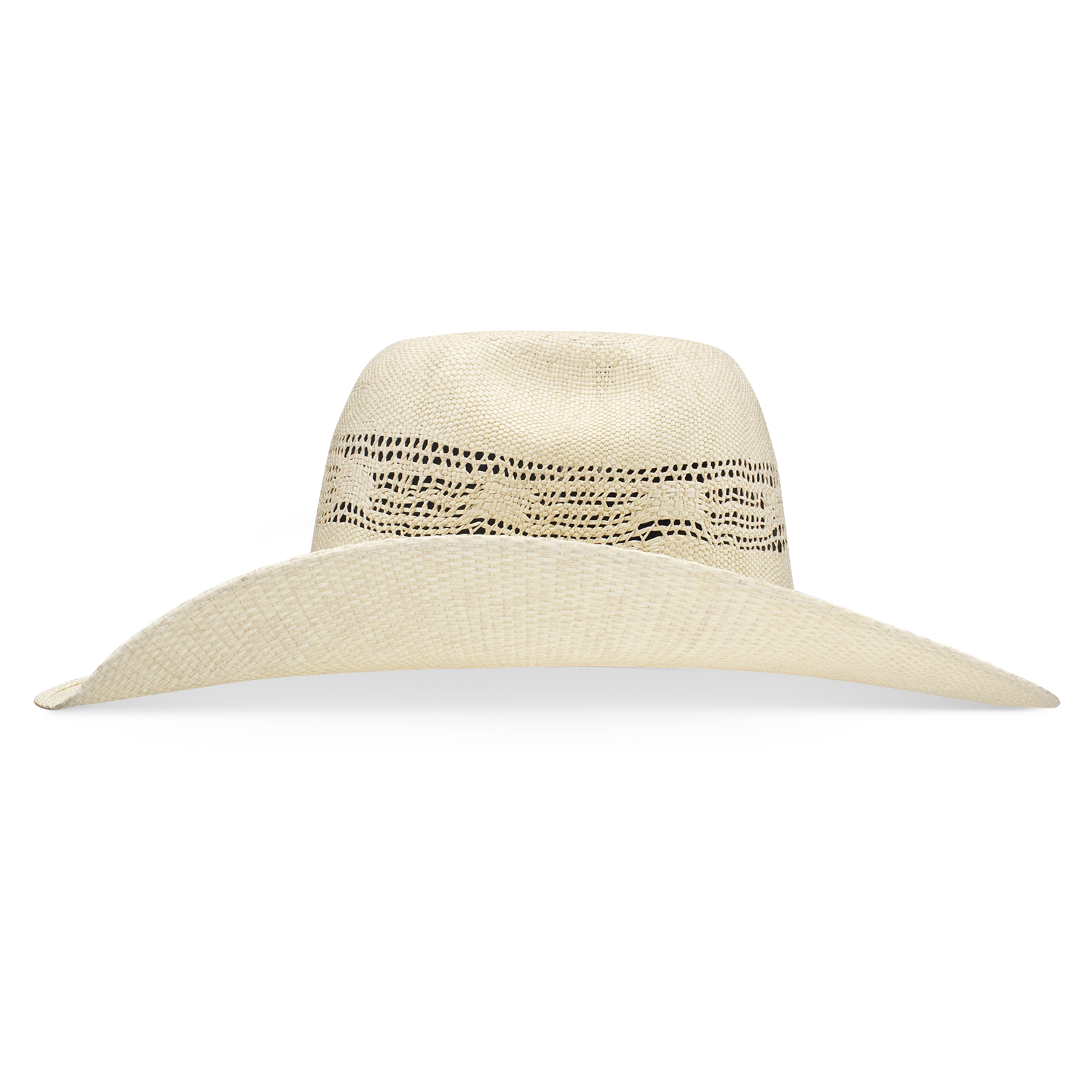 The Amberwood Cowboy Hat features durable Bangora straw woven with an all-around vent, keeping you cool and comfortable. It boasts a classic 4 1/2" brim for sun protection and a 5 1/4" rounded brick crown for a timeless Western style. Perfect for both work and leisure, this hat combines breathability with traditional design.
